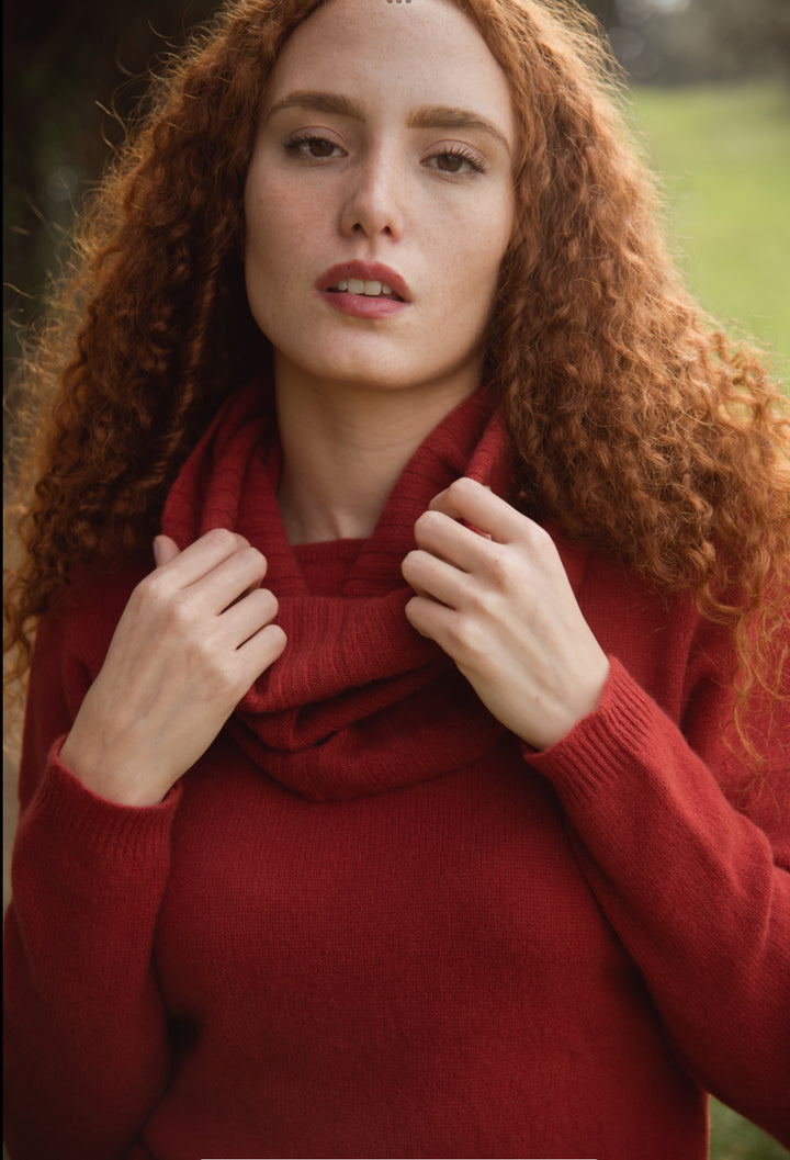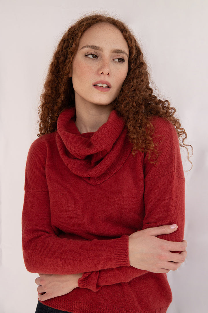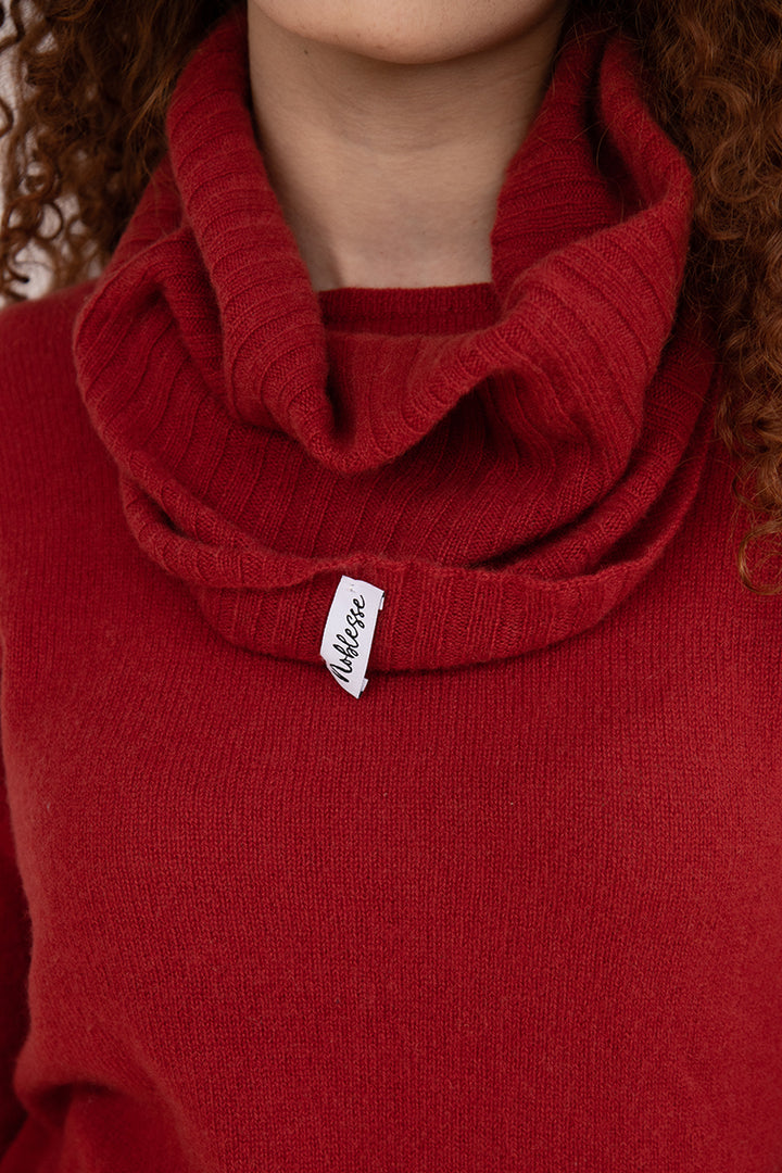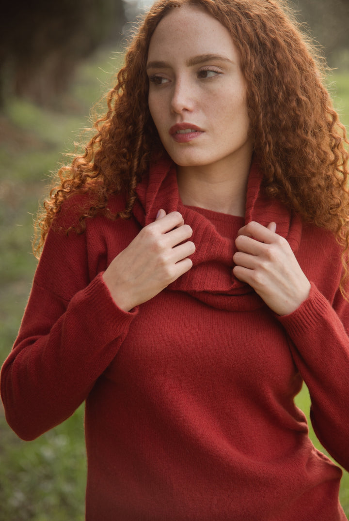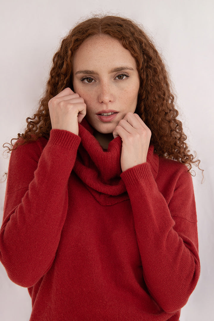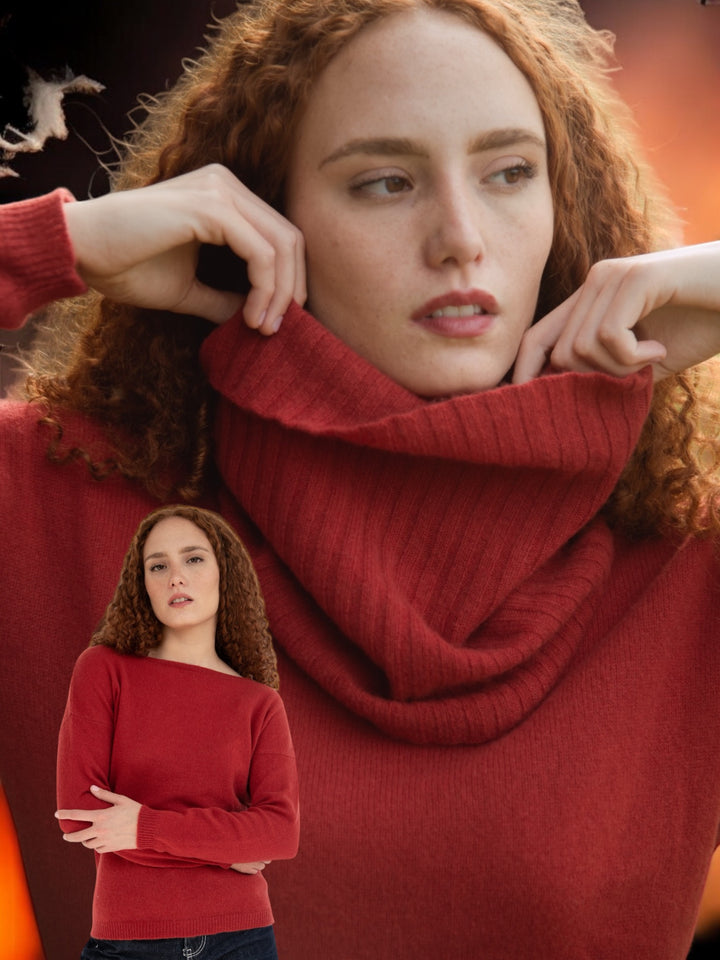 Elena - Pullover Donna Rosso con collo amovibile 100% Cashmere