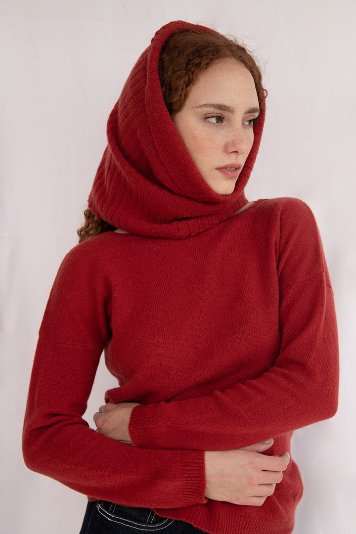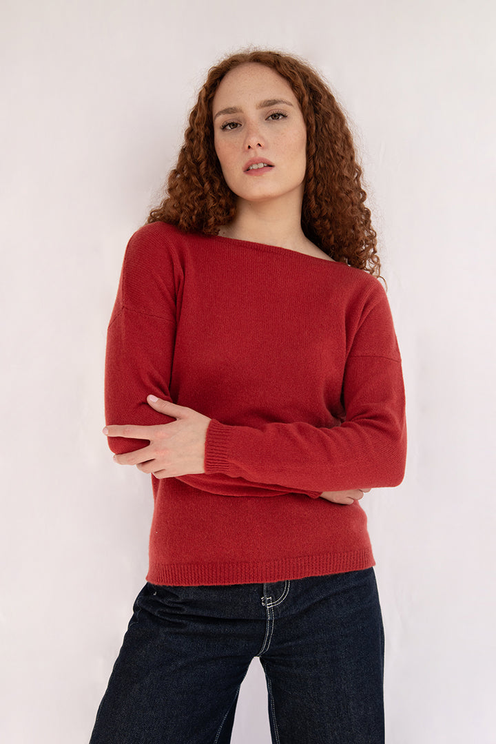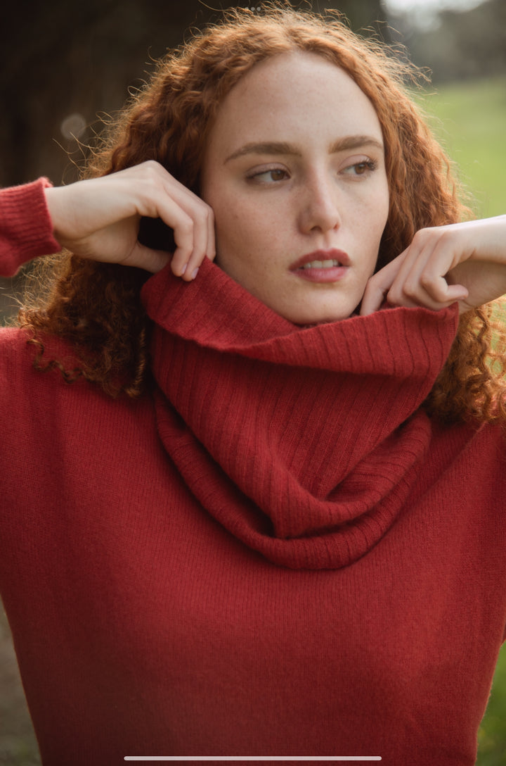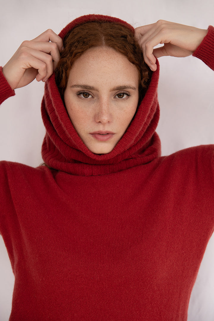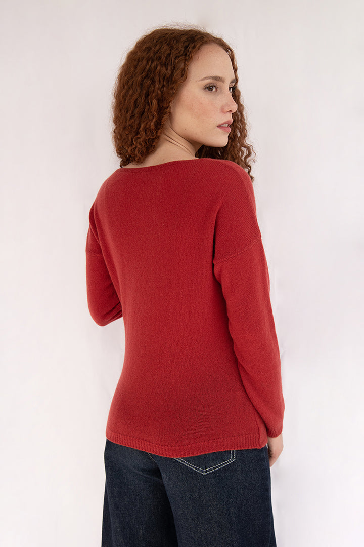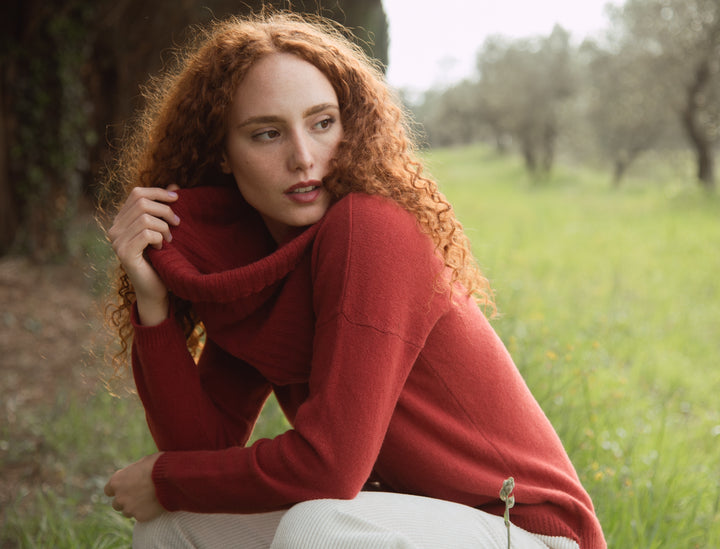 Elena - Pullover Donna Rosso con collo amovibile 100% Cashmere