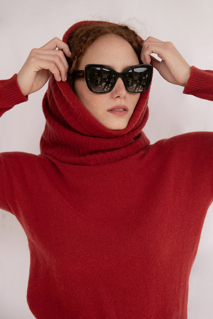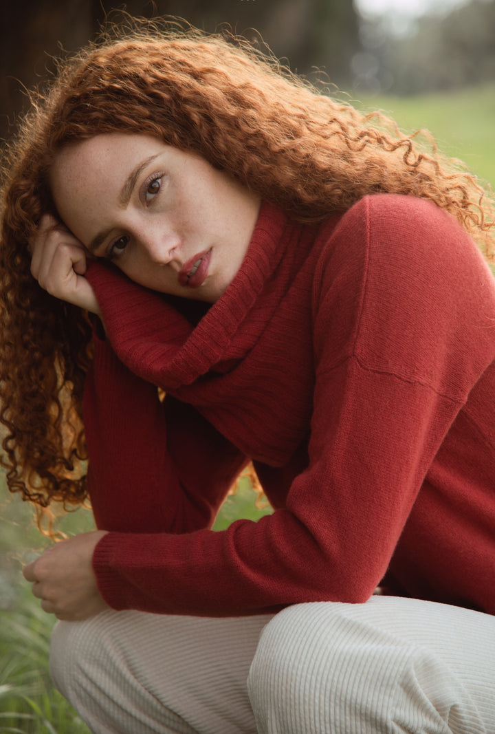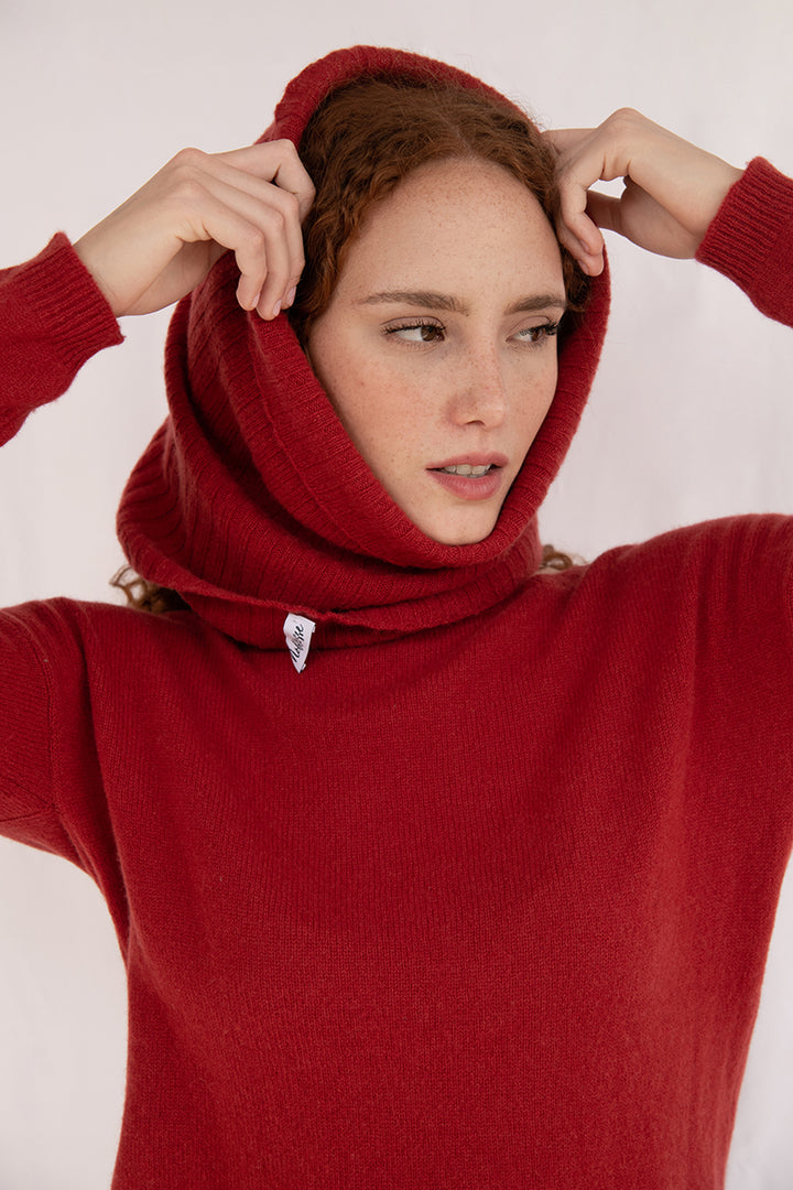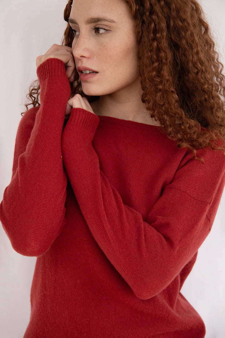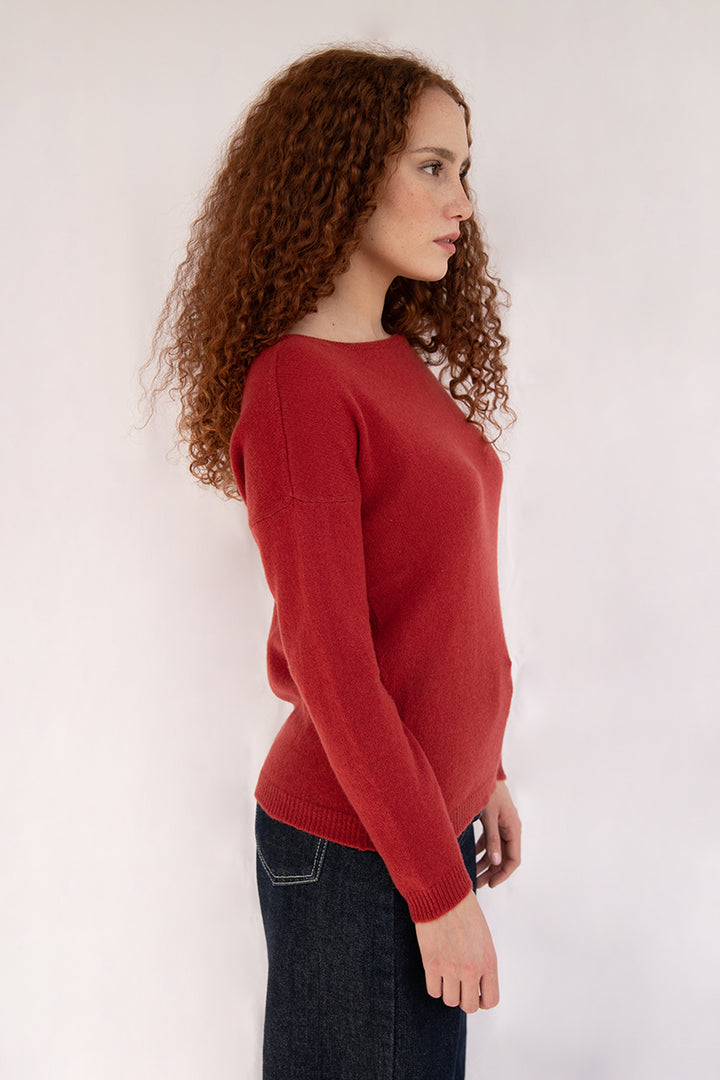 Elena - Pullover Donna Rosso con collo amovibile 100% Cashmere