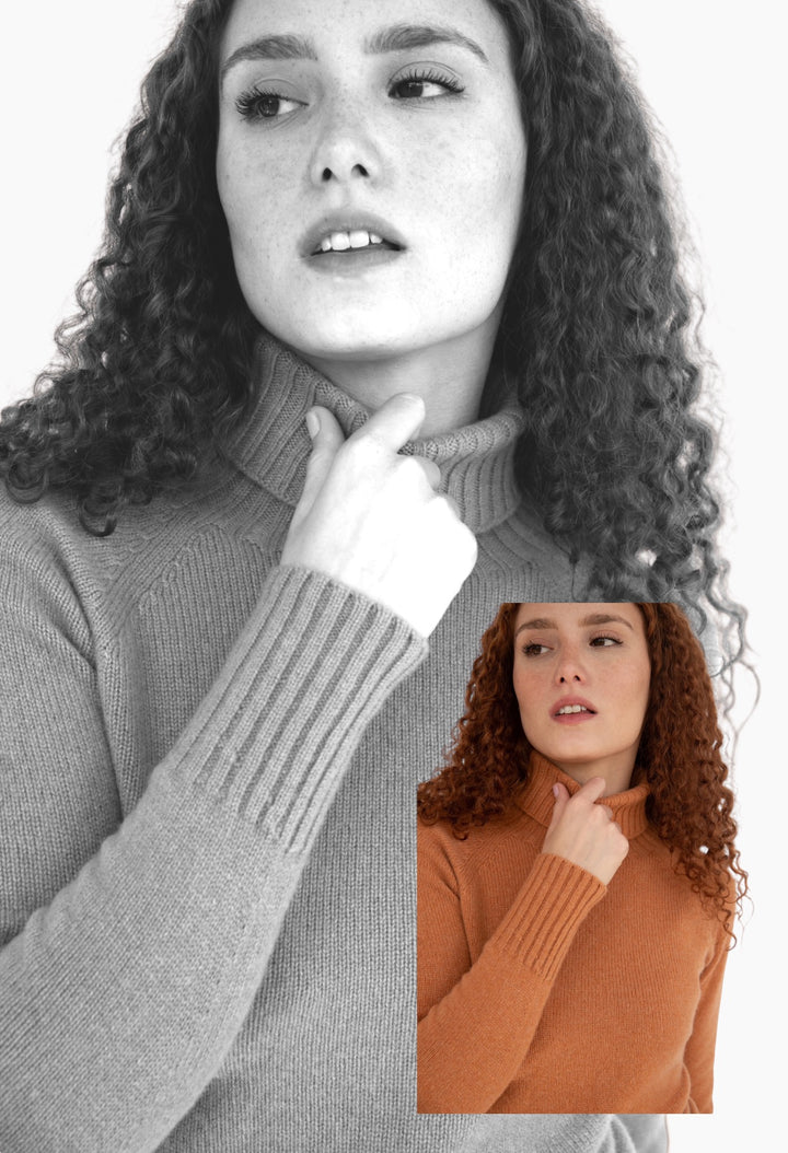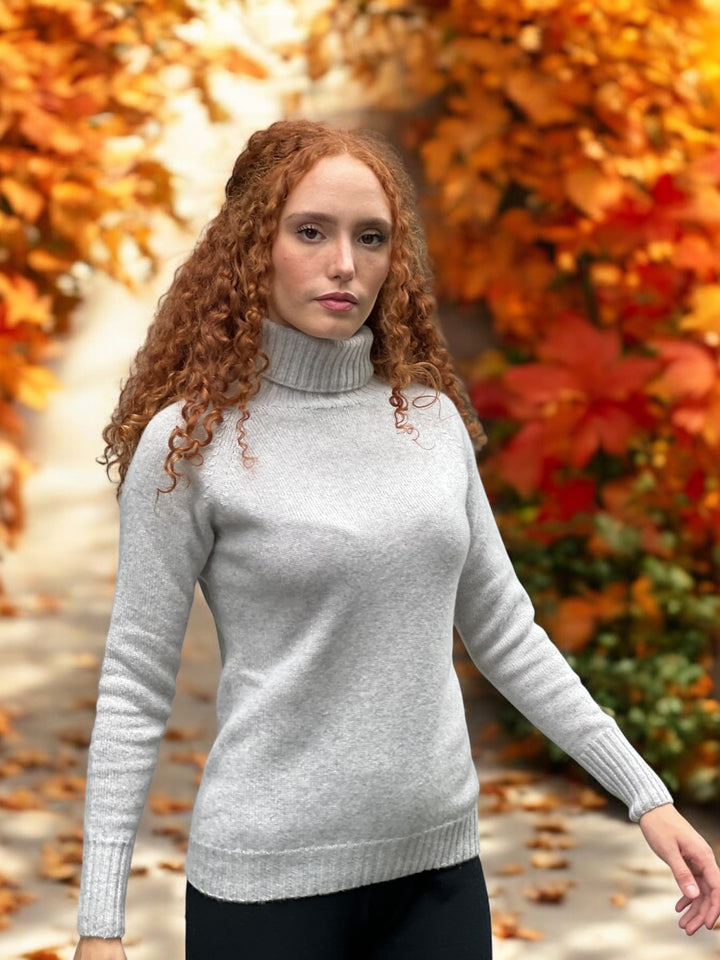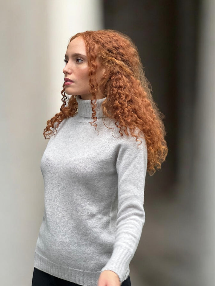 Eva -Pullover dolcevita 100% Cashmere grigio perla
