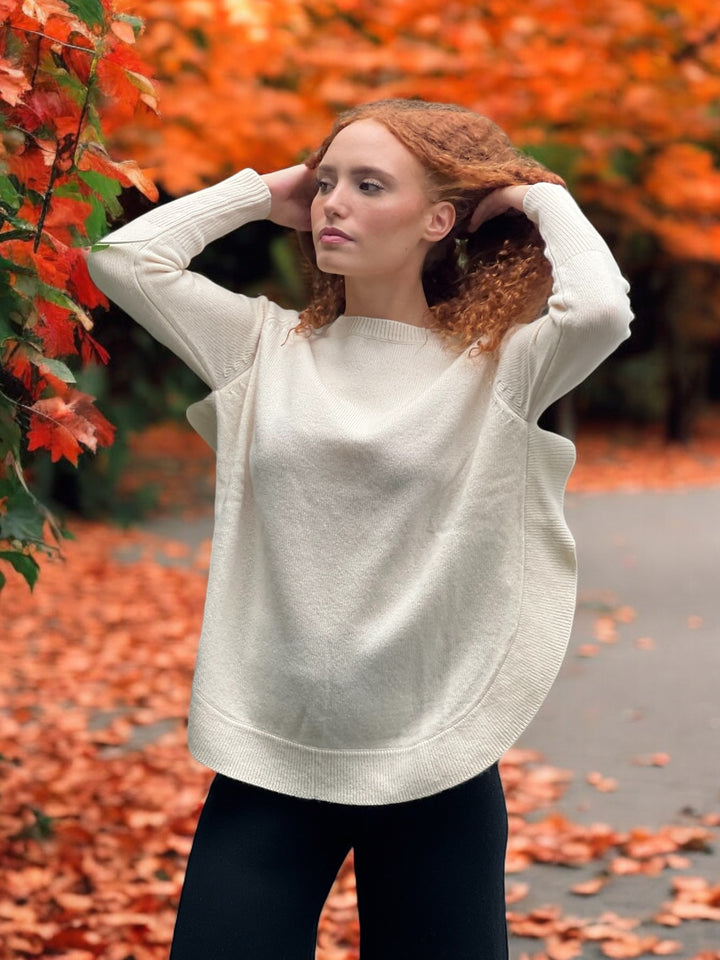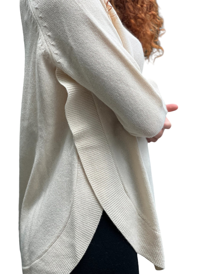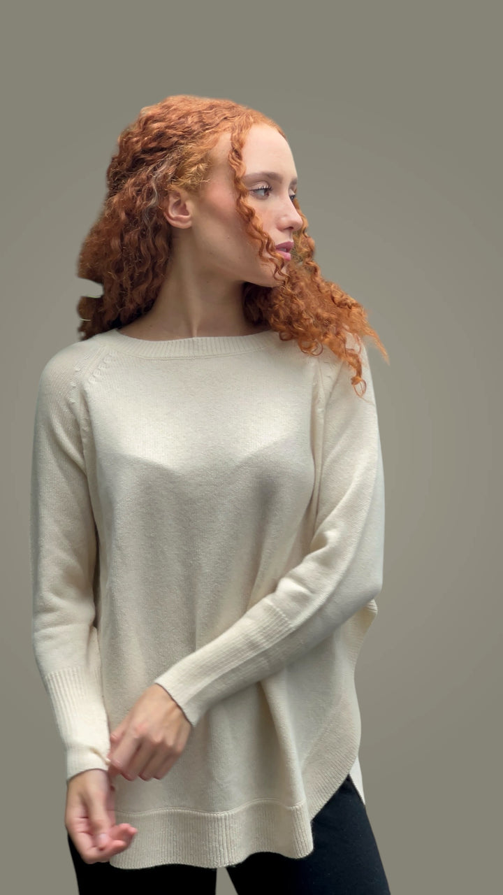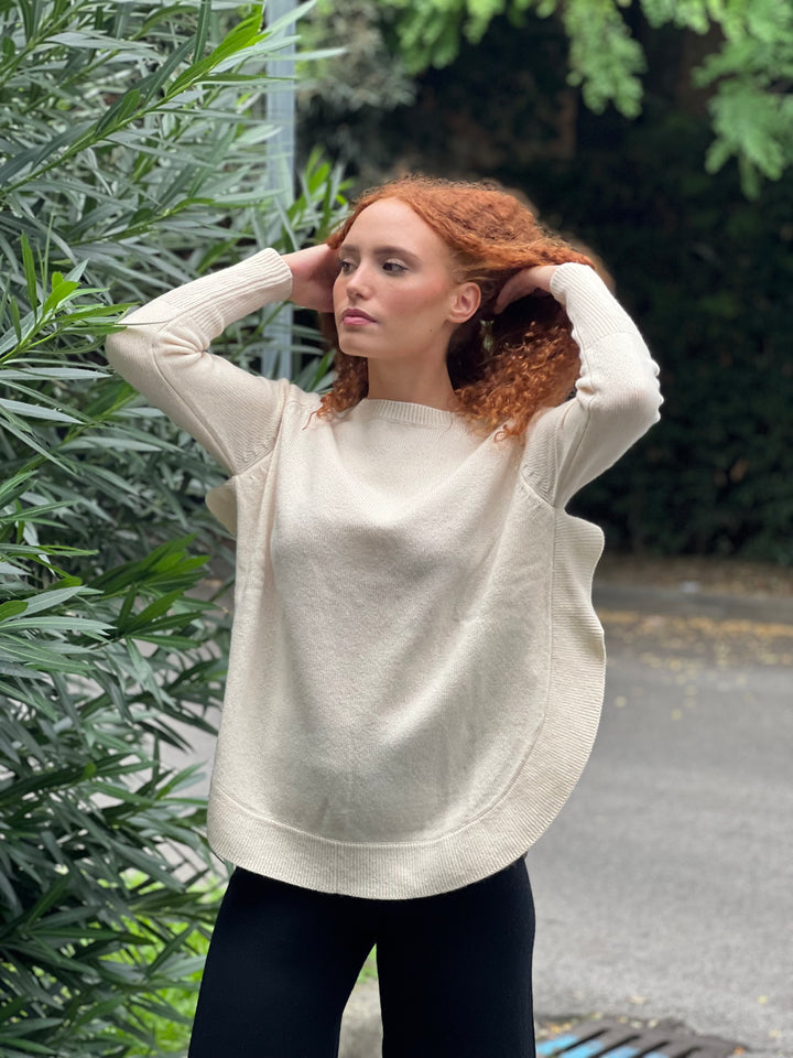 Jasmine Color Avorio 100% cashmere - Modello asimmetrico con aperture laterali. Un capo versatile ed elegante.