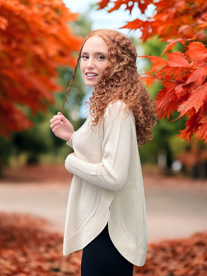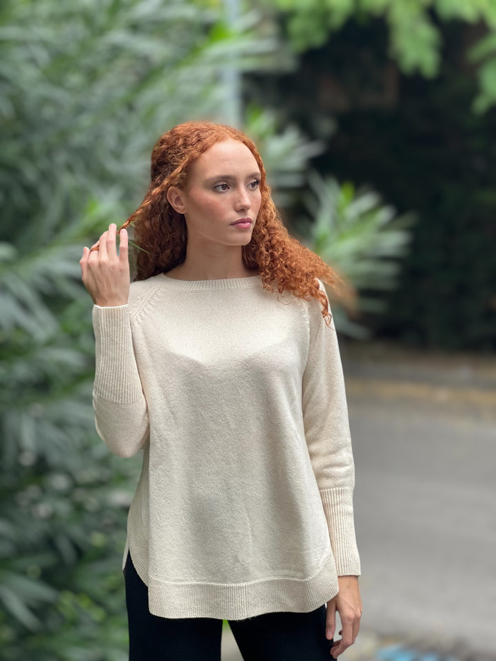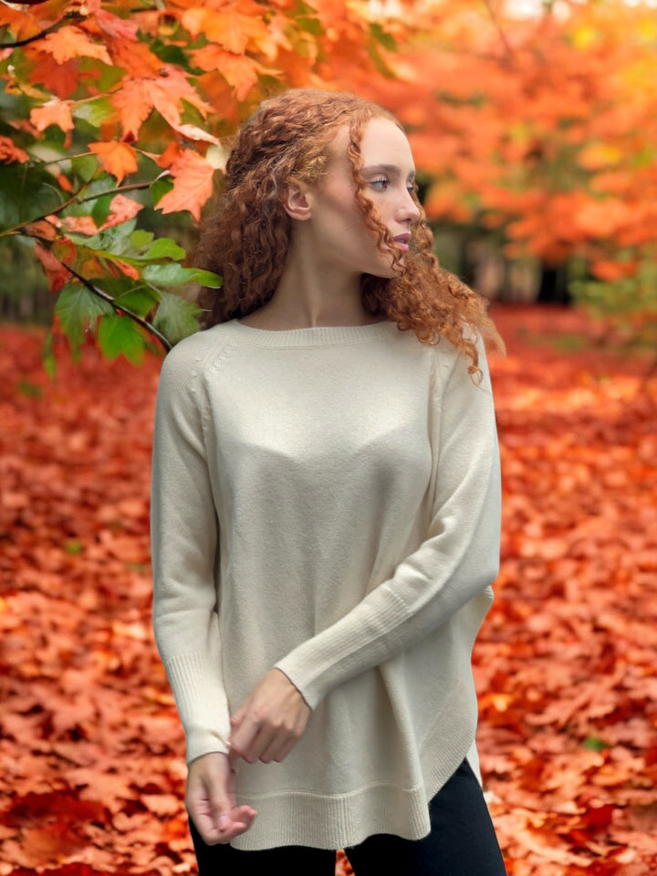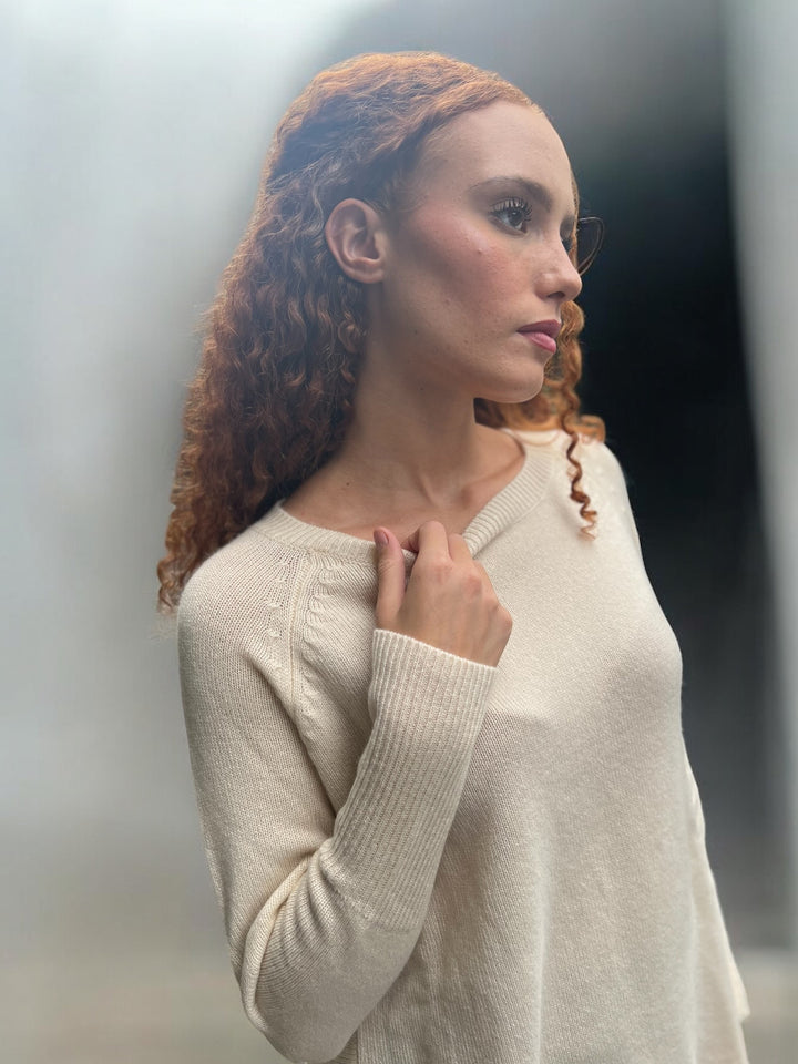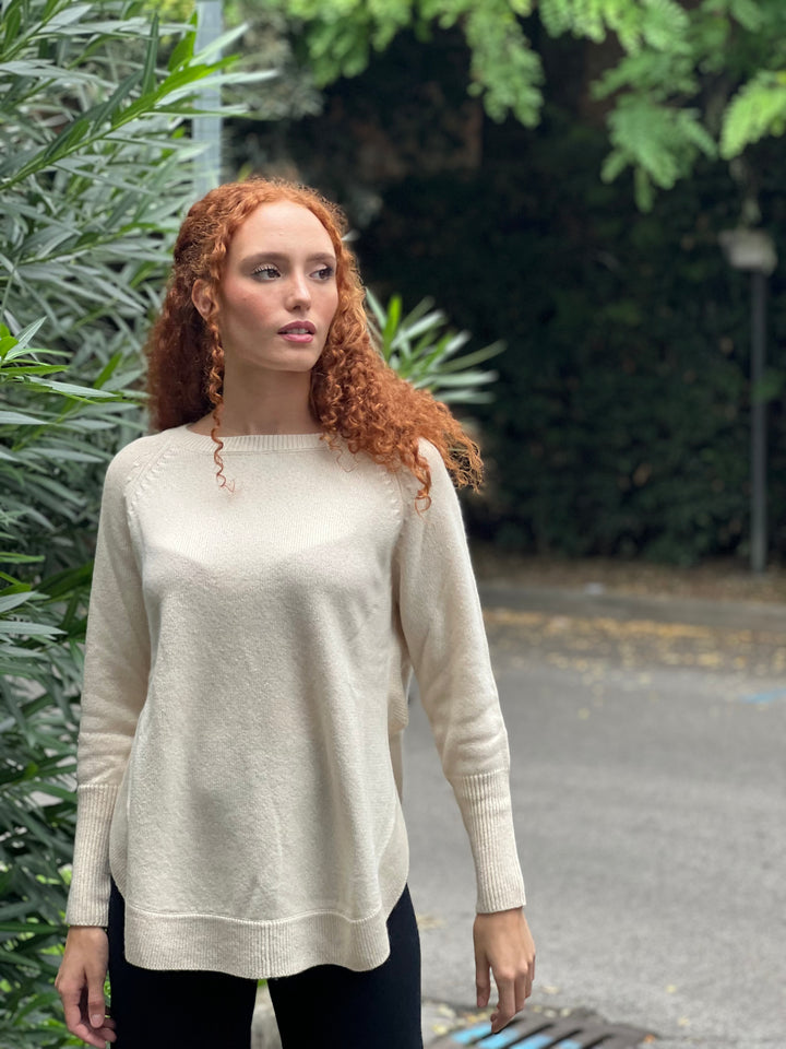 Jasmine Color Avorio 100% cashmere - Modello asimmetrico con aperture laterali. Un capo versatile ed elegante.