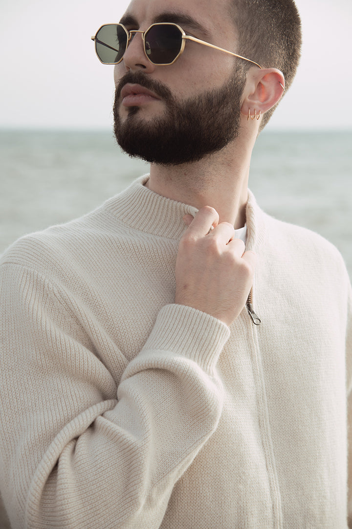 Il nostro Modello porta una taglia L - é alto 185 cm. e pesa 82 Kg.