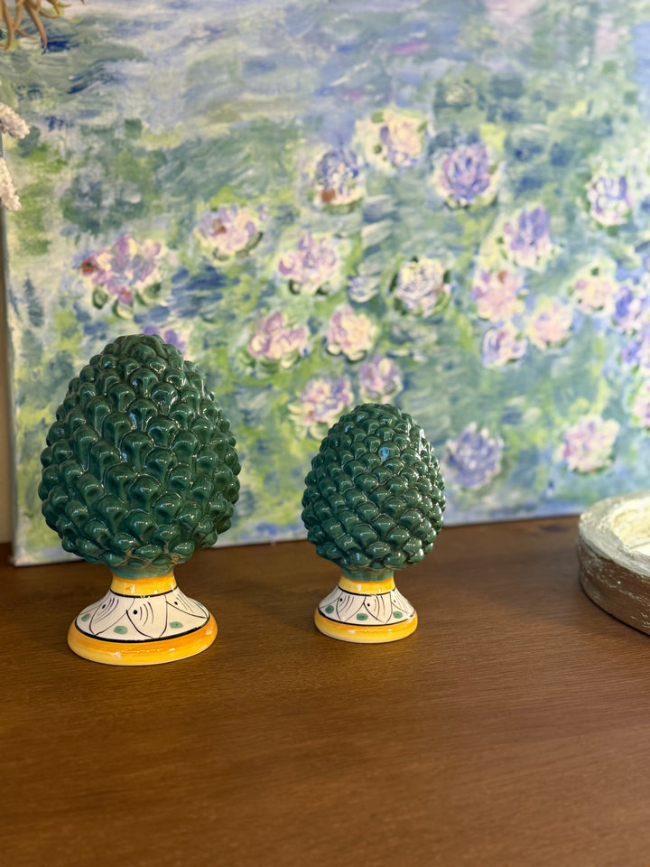 Pigna in ceramica smaltata - simbolicamente la pigna rappresenta la fertilità, l´abbondanza e buon auspicio, ottimo come regalo o portafortuna in tutte le case.