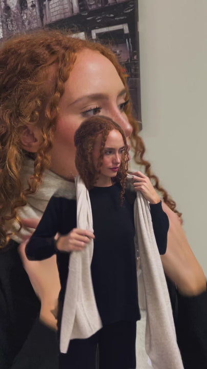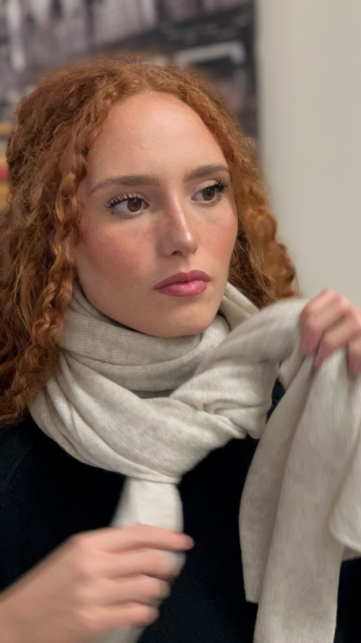 Morbida e leggera, la sciarpa in puro Cahmere è un capo adatto a tutte le stagioni, soffice e versatile, si presta anche ad essere usata come coprispalle